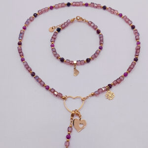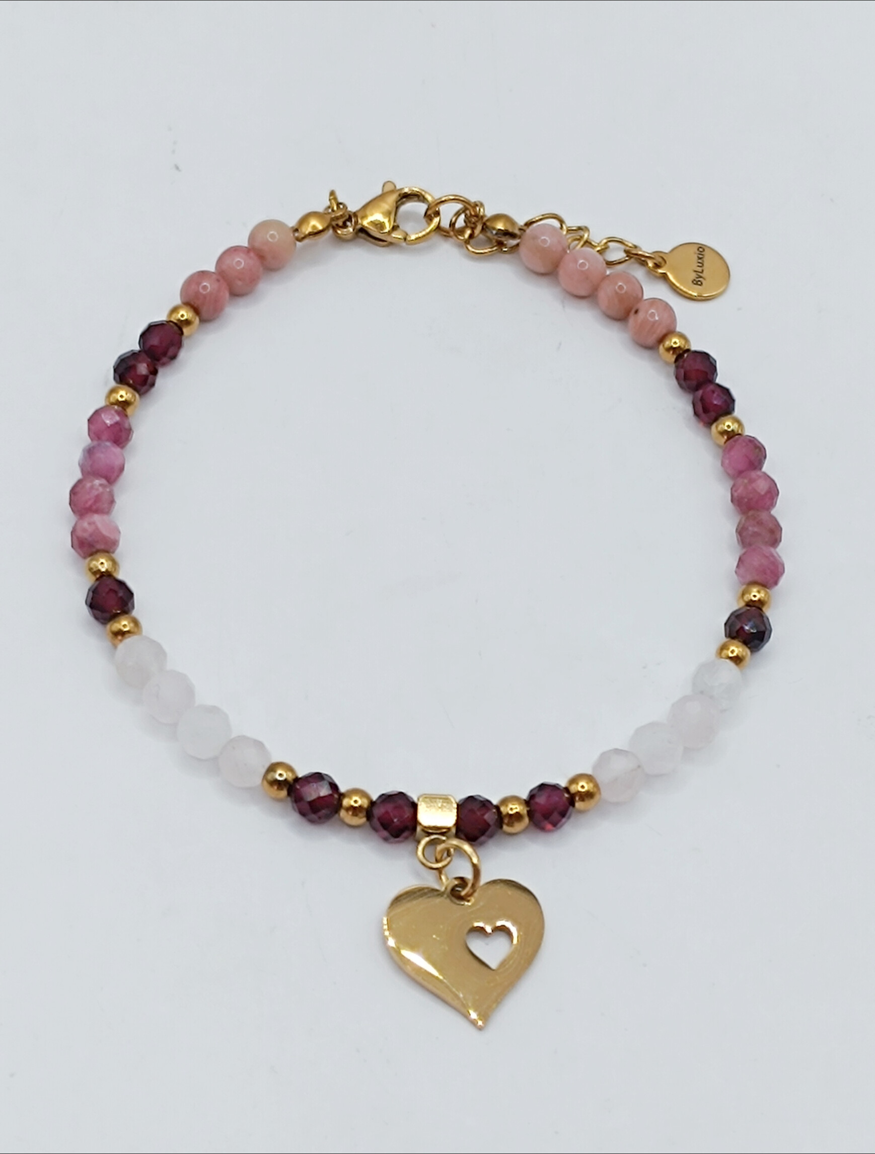 Brsnsoletka wykonana z kamieni naturalnych takich jak Kwarc Różowy, Granat, Rodonit i Różowy Turmalin.