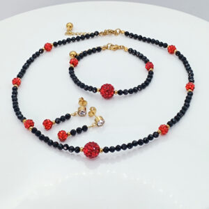 ozdobiona kuleczkami w kolorze czerwonym z cyrkoniami